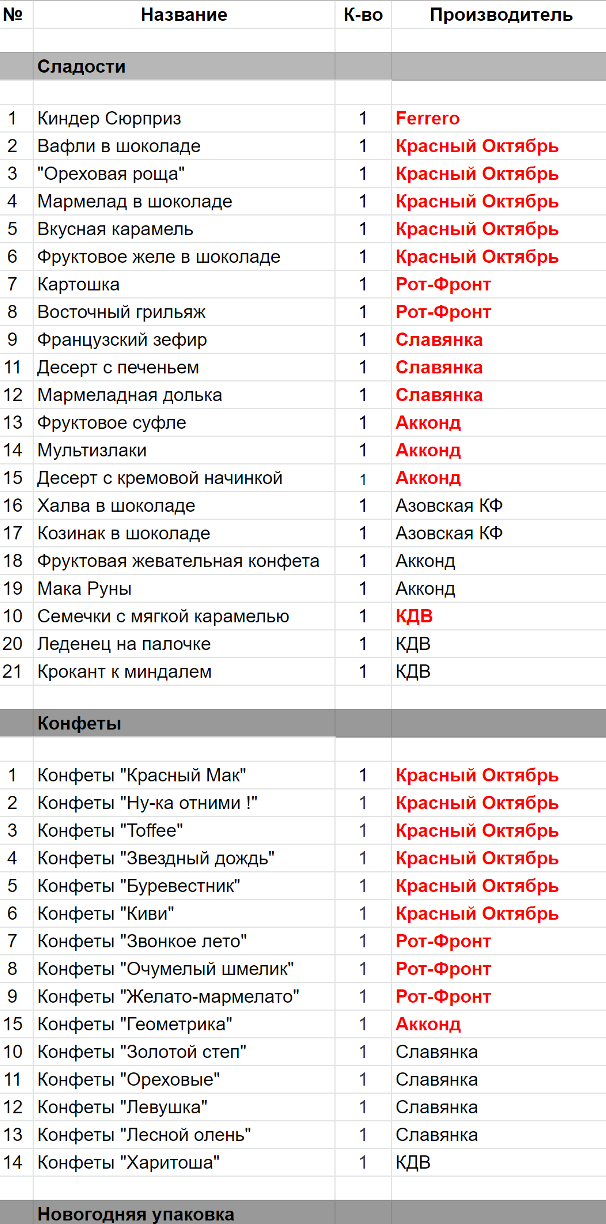 1. Проверить, можно ли внести изменения в состав подарка. Если нет, то скорее всего наборы были собраны еще летом из конфет, произведенных еще раньше