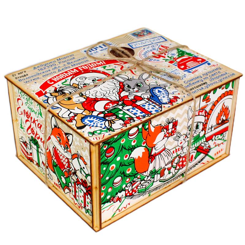 Детский подарок на Новый Год в упаковке из дерева весом 1000 грамм