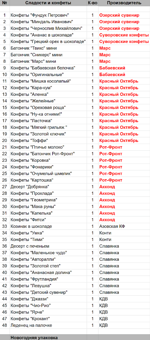1. Проверить, можно ли внести изменения в состав подарка. Если нет, то скорее всего наборы были собраны еще летом из конфет, произведенных еще раньше