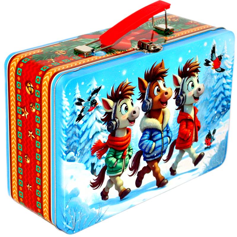 Оригинальная жестяная упаковка с новогодней тематикой и чудесным составом вкуснейших конфет. Вашим деткам понравится!